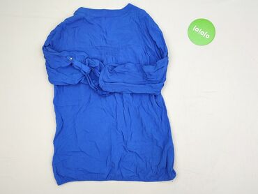 Granatowa bluzka damska z długim rękawem - Fason: prosty, lekko taliowany - Dekolt: w kształcie litery V z przodu, klasyczny z tyłu - Rękaw: długi - Materiał: 100% bawełna (metka) - Rozmiar z metk...Kolor: