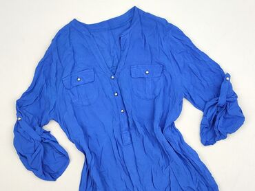 Niebieska bluzka damska z rękawami 3/4. Bluzka charakteryzuje się okrągłym dekoltem i zapięciem na guziki z przodu, dodając jej funkcjonalności. Jest to praktyczny element garderoby, odpowiedni do ...
