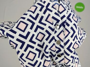 Bluzka damska H&M w rozmiarze EUR 36, wykonana w 100% z poliestru, co zapewnia lekkość i przewiewność. Charakteryzuje się niebiesko-białym wzorem geometrycznym, przypominającym gwiazdy lub płatki ś...