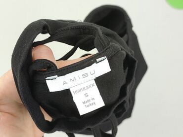Czarna bluzka damska AMISU w stylu boho/off-shoulder. - Dekolt hiszpański z elastyczną gumką – można nosić na odsłonięte ramiona - Krótkie rękawy wykończone koronką - Ozdobny, szeroki pas koronkow...