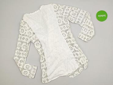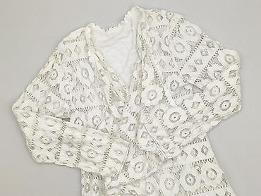 Ażurowy biały top damski typu narzutka/bolerko - Krój: luźny, krótki, z szerokimi rękawami kimono - Materiał: siateczkowy, ażurowy (duże oczka), lekki i przewiewny - Dekolt: w kształcie litery V -...