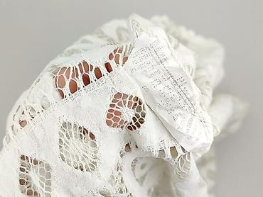Ażurowa narzutka/kardigan damski, biały - Delikatna, półprzezroczysta siateczka z koronkowym motywem kwiatowym oraz geometrycznymi wstawkami - Długi rękaw, otwarty przód bez zapięcia – ładnie ukła...