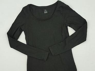 Bluzka damska KappAhl z długim rękawem - Kolor: czarny - Rozmiar z metki: 34–36 - Krój: dopasowany, dekolt łódkowy - Rękawy: długie, wykonane z elastycznej, połyskującej dzianiny z drobną nitką (e...