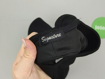 Bez rękawówCzarna bluzka damska Signature o fasonie baskinki. Bluzka jest bez rękawów, z okrągłym dekoltem z przodu i dekoltem w kształcie litery V z tyłu, co nadaje jej charakterystyczny wygląd. Wykonana z materiału w 95% składającego się z poliestru i w 5% z elastanu, co zapewnia pewną elastyczność i dopasowanie. Idealna na co dzień lub na specjalne okazje, pasuje do wielu stylizacji. Fason baskinki podkreśla talię i dodaje sylwetce kobiecości.