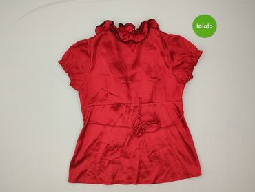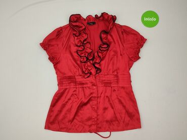 Bluzka damska TXM Fashion - Kolor: intensywna czerwień - Rozmiar z metki: M - Krój: lekko taliowany, krótki rękaw - Dekolt: okrągły z ozdobną, miękko układającą się falbaną/żabotem na przodzie - Z...