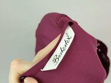 Czerwona, lekko połyskująca bluzka/sweterek Berkertéx. - Długość rękawa: długi - Krój: prosty, dopasowany, bez zapięcia - Dekolt: półgolf/stójka - Dzianina z metaliczną nitką (brokatowy efekt) - El...