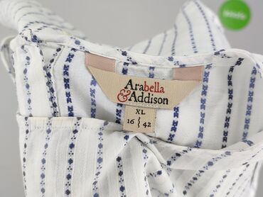 Biała damska bluzka bez rękawów - Krój: luźny, z opuszczonymi ramionami (cap sleeves), lekko wydłużony tył z zaokrąglonym dołem - Dekolt: w kształcie litery V z krótką stójką - Rozmiar: XL (na met...Stan: