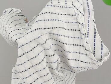 Biała damska bluzka bez rękawów - Krój: luźny, z opuszczonymi ramionami (cap sleeves), lekko wydłużony tył z zaokrąglonym dołem - Dekolt: w kształcie litery V z krótką stójką - Rozmiar: XL (na met...