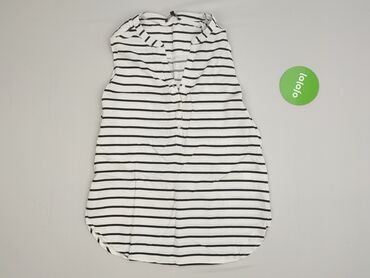 Bluzka damska bez rękawów w paski - Krój: lekko luźny, z zaokrąglonym dołem - Wzór: pionowe paski w odcieniach bieli i błękitu (naprzemienne gładkie i ażurowe/przeszywane pasy) - Dekolt: w serek z...Stan: