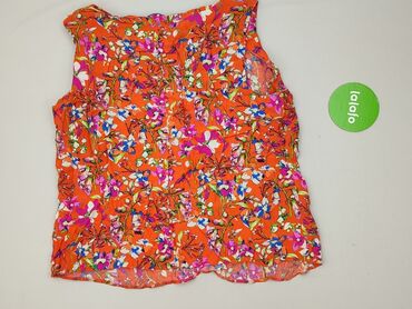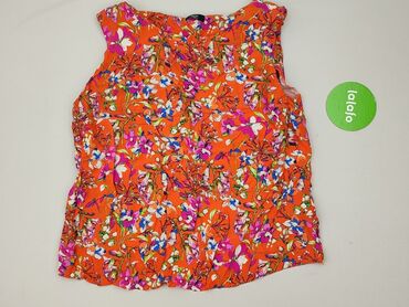 Bluzka damska F&F bez rękawów - Kolor bazowy: czarny - Wzór: duże kwiaty w odcieniach pomarańczu, żółci i zieleni - Krój: prosty, lekko luźny - Dekolt: w kształcie litery V z ozdobnym, wąskim wyci...