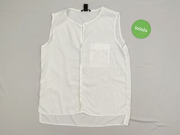 Biała bluzka bez rękawów H&M - Krój: prosty, lekko luźny - Dekolt: w kształcie litery V z przodu - Długość: standardowa do bioder - Materiał: gładka tkanina o delikatnym połysku (syntetyk; miękka ...