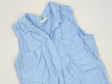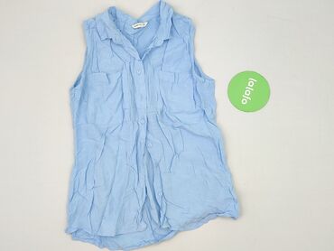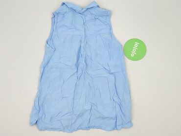 Bluzka damska Sinsay Basic - Rozmiar: XS (z metki) - Krój: bez rękawów, zapinana na guziki z przodu - Kołnierzyk koszulowy - Wzór: niebieskie tło w panterkę (czarne i łososiowe akcenty) - Dół lekk...