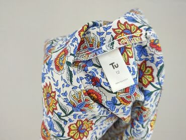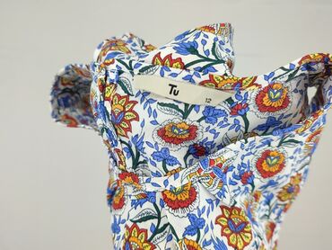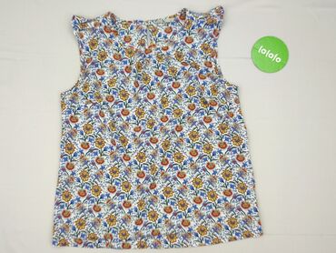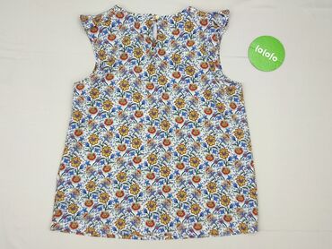 Bluzka damska w kwiaty, rozmiar M. - Fason: bez rękawów, z romantyczną falbaną przy dekolcie i na ramionach - Dekolt: kopertowy/V - Zapięcie: z przodu na guziki - Dół: lekko marszczony, elastyczny...