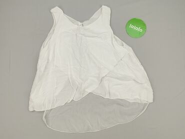 Biała, zwiewna bluzka bez rękawów z lekkiej, półtransparentnej tkaniny. Model o luźnym kroju z podwójną, warstwową konstrukcją i asymetrycznie wydłużonym dołem (dłuższy tył). Dekolt w kształcie lit...Stan: