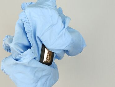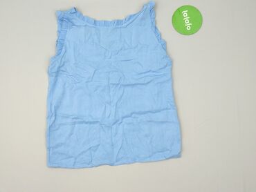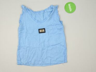 Lekka bluzka bez rękawów w kolorze jasnoniebieskim. - Krój: luźny, z marszczoną gumką u dołu oraz przy dekolcie. - Dekolt: wiązany na troczek po jednej stronie, tworzy efekt falbanki przy szyi. - ...