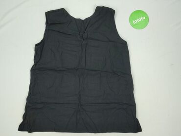 Czarna bluzka bez rękawów - Krój: prosty, lekko luźny, z marszczeniem/zakładką na środku przodu i pionową zakładką na plecach - Dekolt: okrągły, wykończony szeroką listwą - Długość: do bioder - Ma...