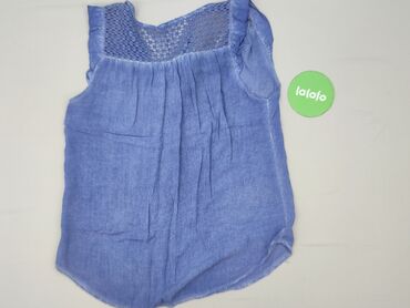 Bluzka bez rękawów w kolorze jasnoniebieskim. - Krój koszulowy, zapinana z przodu na rząd białych guzików. - Dwie naszywane kieszonki na piersi. - Góra i karczek z tyłu wykonane z ażurowej koronki...