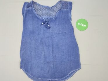 Bluzka damska bez rękawów - Kolor: jasny błękit z ciemnogranatową lamówką przy dekolcie i pachach - Rozmiar: L (EU L) - Fason: luźna, lekko marszczona z przodu, dekolt w kształcie litery V z małym...Stan: