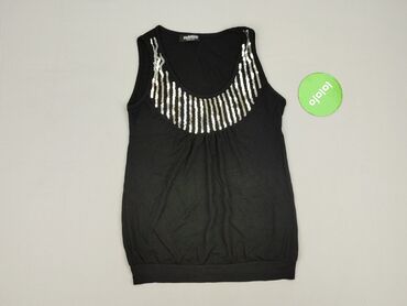 Czarna bluzka/top na ramiączkach EURO GIRLS (model 4066, „SUMMER 08”). - Fason: bez rękawów, z szerokimi ramiączkami krzyżowanymi z przodu przez ozdobne kółko; lekko marszczony przód, dolny pas wyk...Stan: