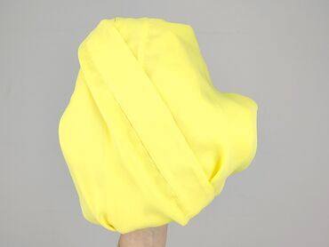 Bluzka damska bez rękawów w intensywnym żółtym kolorze. - Krój: prosty, luźniejszy, z szerokim dekoltem pod szyję; krótkie, kimonowe „rękawki”. - Materiał: lekka, miękka dzianina o drobnej fakturz...