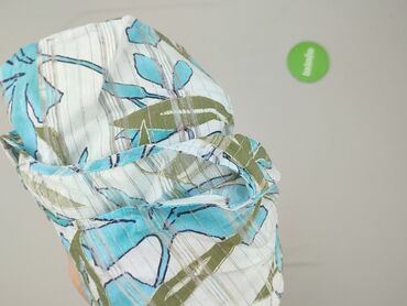 - Wzór: tropikalny/roślinny; odcienie turkusowego, błękitu i oliwkowej zieleni na jasnym tle