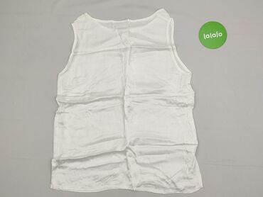Biała damska koszulka bez rękawów (top) - Krój: prosty, luźniejszy, bez rękawów, okrągły dekolt - Materiał: lekka, cienka tkanina bawełniana lub bawełnopodobna (przewiewna, gładka) - Kolor: biały ...