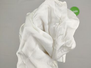 Biała damska bluzka z lekkiej, półprzezroczystej tkaniny (styl szyfonowy). - Fason: luźny, prosty krój typu boxy, bez klasycznych rękawów (opadające ramiona). - Dekolt: okrągły. - Zapięcie: z...