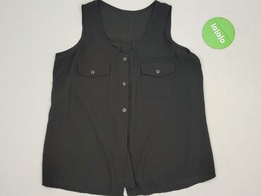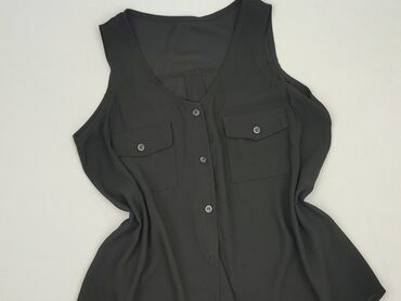 Czarna bluzka bez rękawów - Krój: prosty, lekko rozszerzany na dole; okrągły dekolt z delikatną zakładką z przodu - Zapięcie: małe rozcięcie z tyłu na guzik - Materiał: 100% poliester – gładki, le...