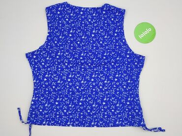 Top damski bez rękawów - Kolor: intensywny kobaltowy/niebieski z białym, drobnym roślinnym wzorem - Krój: prosty, lekko skrócony; okrągły dekolt; szerokie ramiączka - Boki z doszytymi troczkami do...