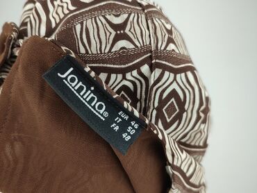 Bluzka damska JANINA - Rozmiar z metki: EU 44 (D 46, FR 48) - Fason: lekko luźny, z dłuższym, zaokrąglonym dołem - Rękaw: długi - Dekolt: w kształcie litery V - Wzór: drobny, biały kwiatowo‑listny...