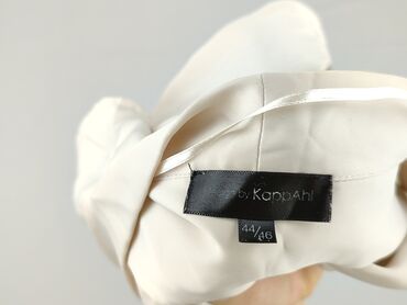 Bluzka damska KappAhl - Marka: Design by KappAhl - Rozmiar z metki: 44/46 - Kolor: czarny - Krój: luźny, wydłużony tył, zapinana z przodu na guziki - Rękaw: bardzo krótki/koszulkowy z marszczeniem...