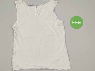 Biała bluzka bez rękawów New Look - Materiał: lekka, miękka dzianina z podszewką; przód pokryty ażurową koronką o kwiatowym motywie - Fason: prosty, zwiewny; lekko dłuższy tył - Dekolt: okrągły z ...Stan: