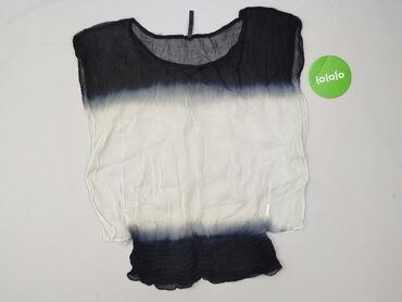 Bez rękawówDamska bluzka bez rękawów z lekkiej, plisowanej tkaniny. Krój luźny, z okrągłym dekoltem. Dół zakończony szerokim, elastycznym ściągaczem, który ładnie układa bluzkę na biodrach. Efekt ombre: od góry czarny, przechodzący płynnie w biel i ponownie w ciemny odcień przy ściągaczu. Materiał półprzezroczysty, przewiewny, o wyraźnej fakturze „crinkle”.