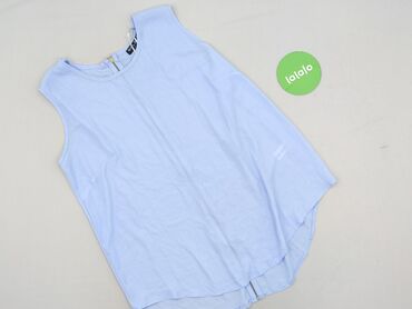 Bluzka damska bez rękawów - Kolor: jasny błękit z ciemnogranatową lamówką przy dekolcie i pachach - Rozmiar: L (EU L) - Fason: luźna, lekko marszczona z przodu, dekolt w kształcie litery V z małym...