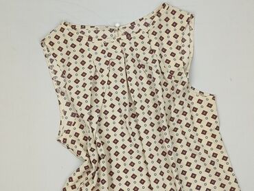 Bluzka damska z długim rękawem, rozmiar L. - Wzór: geometryczny, retro – beżowo-szare prostokąty i owalne motywy na białym tle - Fason: luźny, prosty krój - Dekolt: w serek z krótką listwą guzikow...
