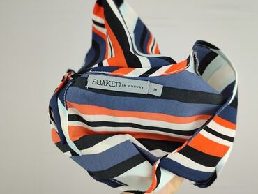 OkrągłyBluzka damska marki Soaked in Luxury w rozmiarze M, charakteryzująca się wzorem w paski. Dominujące kolory to granatowy, biały, pomarańczowy i czarny. Bluzka posiada okrągły dekolt i jest wykonana w 100% z poliestru, co zapewnia jej lekkość i przewiewność. Idealna na co dzień, do pracy lub na letnie wyjścia.
