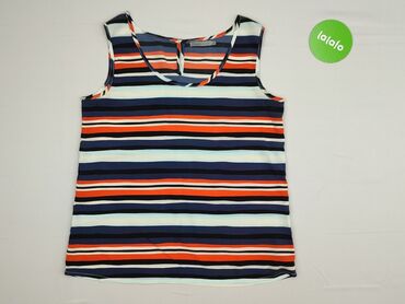 Bluzka damska w paski Collection L - Krój: luźny T‑shirt bez klasycznych rękawów, z delikatnie opadającą linią ramion - Dekolt: okrągły - Wzór: poziome paski – ciemny granat/czarny + jasny żółty (...Stan: