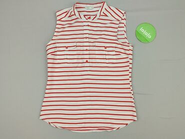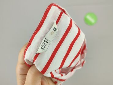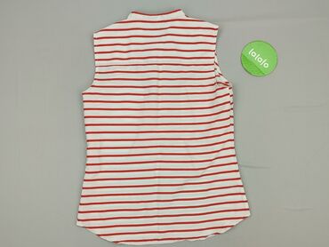 Bez rękawówBluzka damska marki House bez rękawów, o klasycznym, prostym kroju. Charakteryzuje się wzorem w biało-czerwone poziome paski. Wyposażona w mały kołnierzyk i guziki na dekolcie, co dodaje jej elegancji. Bluzka posiada dwie praktyczne kieszenie na wysokości klatki piersiowej, zamykane na guziki. Idealna na co dzień, do pracy lub na spotkania towarzyskie.