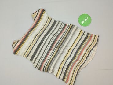 Bluzka damska w paski, made in Italy. - Krój: luźny, lekko rozszerzany ku dołowi, zaokrąglony dół - Dekolt: okrągły, obszyty lamówką - Rękawy: krótkie „cold shoulder” – wycięte ramiona, wiązania n...