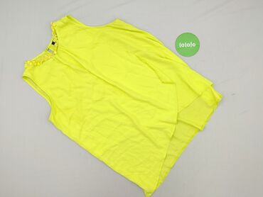 Żółta bluzka damska bez rękawów - Rozmiar z metki: 38 - Krój: luźny, lekko zaokrąglony dół, przedłużony tył, delikatnie opadające ramiona (cap sleeves) - Dekolt: w kształcie litery V - Materiał: c...