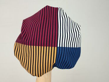 - Wzór: duże kolorowe kwadraty w pionowe paseczki; kolory: granat, musztarda, bordo, biel.
