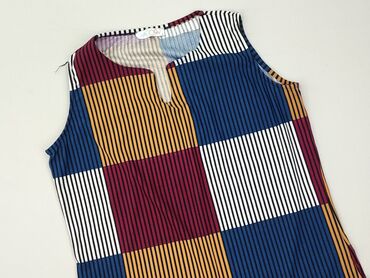 Bluzka damska bez rękawów W5, rozmiar M - Krój: luźny, rozszerzany ku dołowi; zaokrąglony dół - Dekolt: okrągły z drobną zakładką i ozdobnym guzikiem przy kołnierzyku - Wzór: paisley + geometryczn...