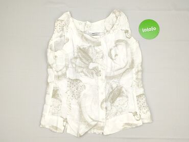 Bez rękawówBiała bluzka damska marki SANDORECCI, bez rękawów, z jasnym wzorem na całej powierzchni. Model zapinany na guziki z przodu. Lekki materiał sprawia, że jest odpowiednia na cieplejsze dni.