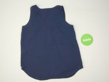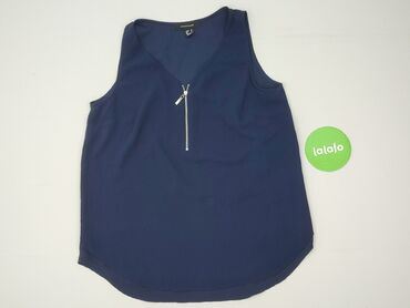 Bluzka damska marki Atmosphere w rozmiarze 40, wykonana w 100% z poliestru. Granatowa bluzka bez rękawów w białe, pionowe paski. Posiada kołnierzyk i dekolt w kształcie litery V, z zapięciem na jed...