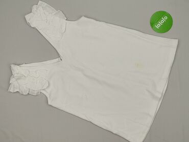 Biała bluzka bez rękawów z falbaną - Krój: top bez rękawów, dekolt w kształcie serca z szeroką falbaną przechodzącą przez środek przodu. - Dół lekko zaokrąglony, tył nieco dłuższy. - Materiał: 95%...