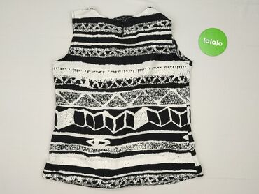 Bez rękawówCzarno-biała bluzka damska bez rękawów z marki Greenpoint. Charakteryzuje się unikalnym, geometrycznym wzorem, który łączy paski, trójkąty i inne abstrakcyjne kształty, tworząc dynamiczny i nowoczesny wygląd. Wykonana w 100% z poliestru, co zapewnia lekkość i swobodę noszenia. Idealna do stylizacji na co dzień, zarówno do spodni, jak i spódnic. Krój bluzki jest luźny, zapewniający komfort.