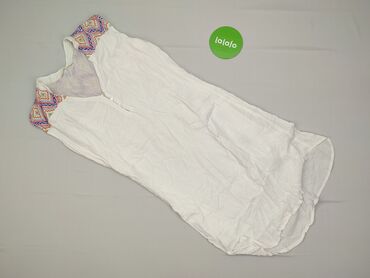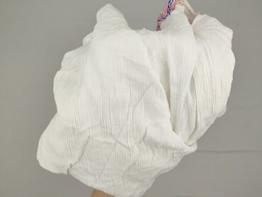 Biała bluzka damska bez rękawów - Krój: luźny, lekko przedłużany tył z falowanym/brzegiem typu falbanka - Dekolt: okrągły - Przód: delikatna, błyszcząca aplikacja w kształcie kwiatu (słonecznik) -...