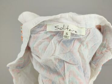 Bez rękawówBiała bluzka damska bez rękawów marki Solitaire, wykonana z mieszanki bawełny i wiskozy. Charakteryzuje się dekoltem w kształcie litery V z zapięciem na trzy guziki oraz ozdobnym haftem w geometryczny wzór na ramionach w odcieniach różu, błękitu i zieleni. Idealna na co dzień, zapewnia komfort noszenia i lekkość.