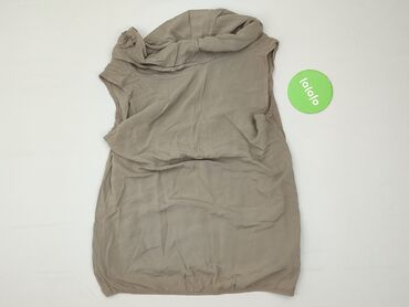 Bluzka damska z miękkiej dzianiny, beżowa. - Krój: dopasowany, krótkie rękawy. - Kołnierz: wysoka, miękka stójka/komin układający się w luźne fałdy. - Materiał: 72% wiskoza, 28% nylon – przyjemna ...