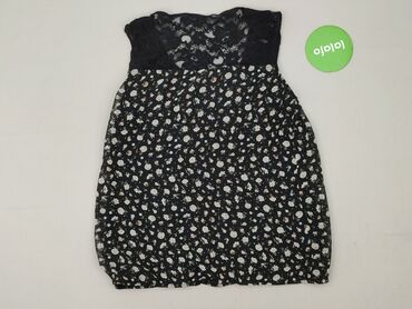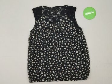Czarna bluzka damska bez rękawów z ozdobną koronką przy dekolcie i na plecach (motyw kwiatowy, w kształcie litery V). - Krój: luźniejszy, z krótkimi rękawkami typu cap. - Dekolt: okrągły z przodu...Stan: